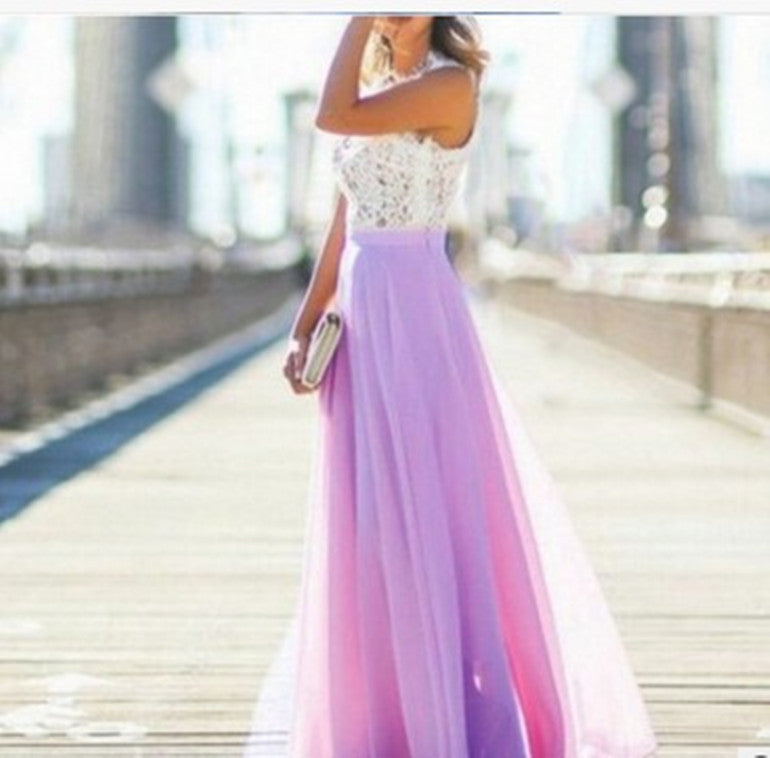 Robe longue en dentelle et mousseline